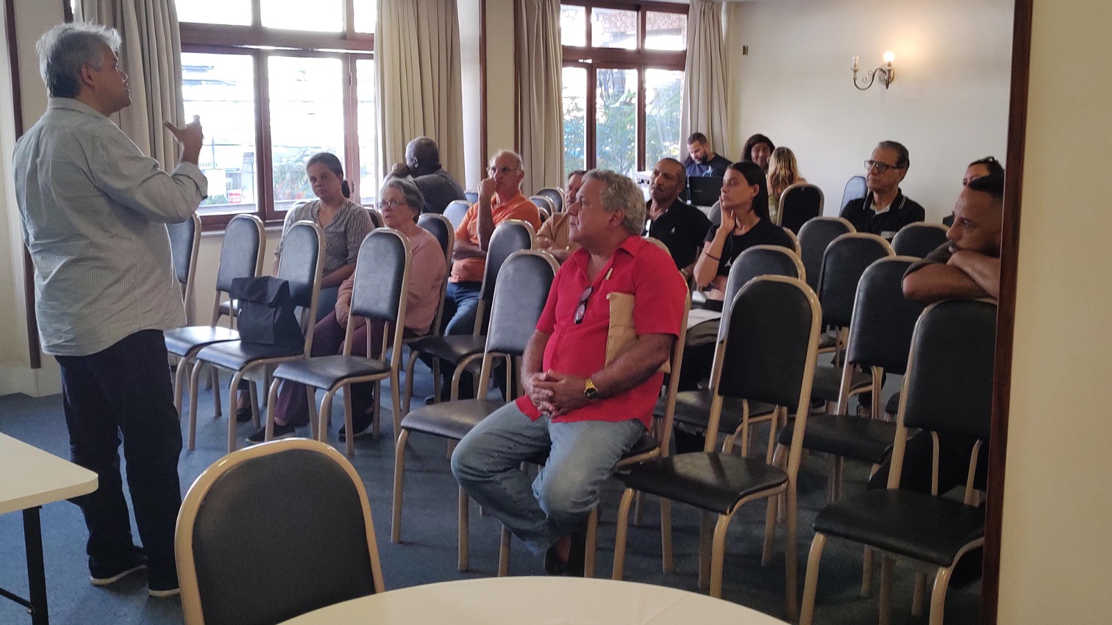 O Presidente do Sinfa-RJ, Luís Cláudio de Santana, esteve presente em Nova Friburgo em reunião com os Servidores Civis das Forças Armadas para falar sobre o reajuste salarial para 2024, que depende do arcabouço fiscal.
