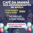 Em celebração aos aniversariantes de março, o Sinfa-RJ realiza um café da manhã especial para reunir filiados e fortalecer os laços da categoria. 🗓 Data: